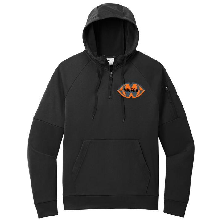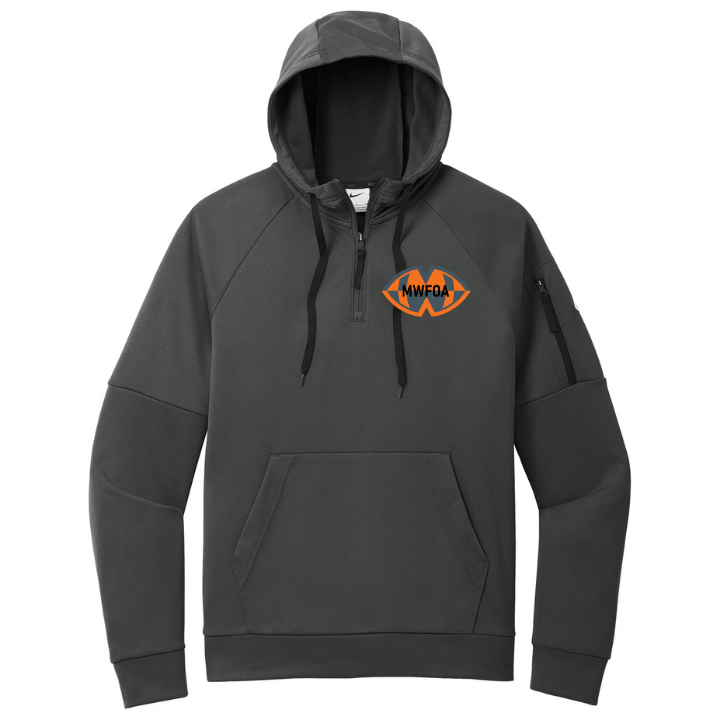 This 1/4-zip hoodie with a zippered left arm pocket brings the heat to your workout with Therma-FIT fabric. Therma-FIT helps manage your body’s natural heat to keep warm in cold-weather conditions. The design includes a three-panel hood with black drawcords, a dyed-to-match zipper and a front pouch pocket. Self-fabric cuffs and hem. A contrast Swoosh logo is embroidered on left sleeve. A contrast Therma-FIT logo is embroidered on back hem. Made of 7.4-ounce polyester Therma-FIT fabric with at least 50% recycled content.